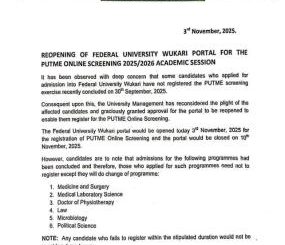 Federal University Wukari has announced that its portal is now open for the 2025/2026 Post-UTME online screening. Federal University Wukari has reopened its Post-UTME screening […]