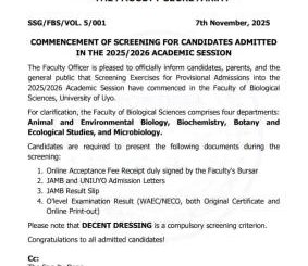 The University ofThe University of Uyo’s Faculty of Uyo’s Faculty of Biological Sciences Biological Sciences has officially launched has officially launched its screening exercise for […]