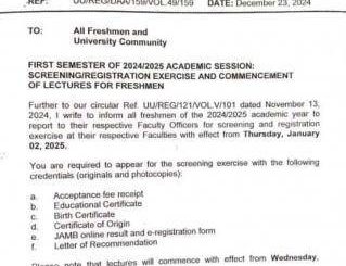 UNIUYO Biology Faculty starts in-person screening for freshers.