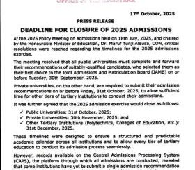 At the 2025 Policy Meeting on Admissions held on July 18, 2025, and presided over by the Honourable Minister of Education, Dr. Maruf Tunji Alausa, […]